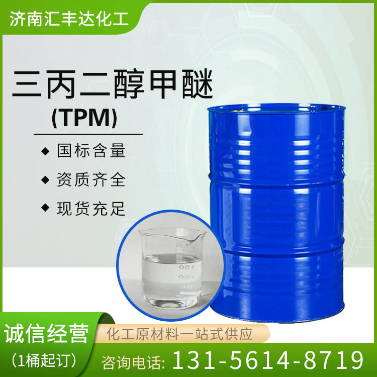 三丙二醇甲醚(英文名稱Tripropyleneglycolmonomethylether簡稱TPM)又名三縮-1,2-丙二醇單甲醚,分子式C10H22O4,分子量206.28,它可完全水溶,并對眾多極性與非極性物質(zhì)有良好的溶解能力。蒸氣壓很低,揮發(fā)性很小,在一些情況下不被視為揮發(fā)性有機化合物,應(yīng)用行業(yè):1、涂料行業(yè)??勺鳛樗針渲?,無色粘稠穩(wěn)定的吸水性液體,幾乎無味無臭, 低毒。2、清洗劑。三丙二醇甲醚適合用于清洗劑,特別是要求極低揮發(fā)速度的體系中,如除蠟劑和地板清潔劑。是潤滑脂和油脂很好的偶合劑,可用作除漆劑和動物油脂除去劑。3、油墨行業(yè)。使油墨毒性降低,改善操作環(huán)境,提高印刷質(zhì)量。